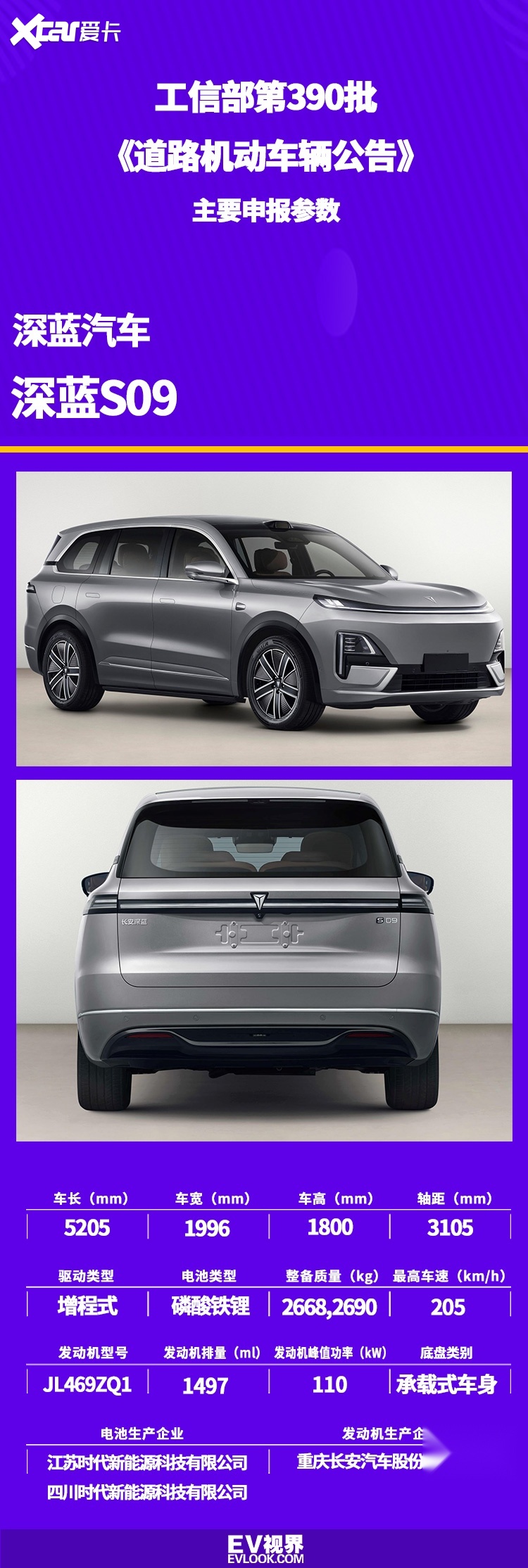 动力方面,该车提供纯电和增程两种动力。单电机版车型上限功率为252kw,最高车速200km/h;双电机版车型前后电机功率分别为188/252kw,最高车速200km/h,两款纯电车型将采用宁德时代/四川时代生产的磷酸铁锂电池。增程车型配备1.5T增程动力系统,增程器功率为115kw,驱动电机峰值功率231kW。
