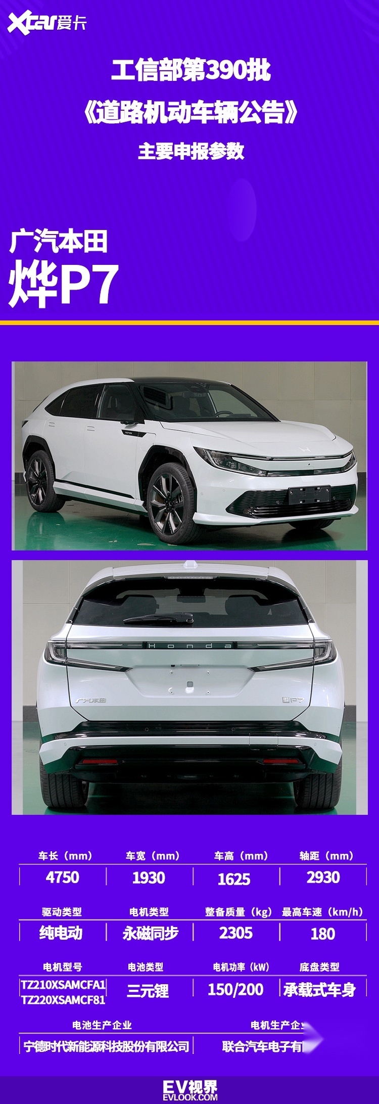 广汽本田烨P7是采用全新纯电架构以及新架构的首款车,定位中型SUV,0-100km/h加速不到4.6s。