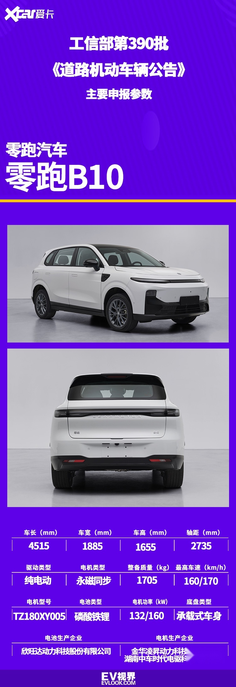 零跑B10为零跑B平台首款全球化车型,采用零跑最新技术架构LEAP 3.5。根据此前的消息称,新车将在明年一季度迎来正式上市。