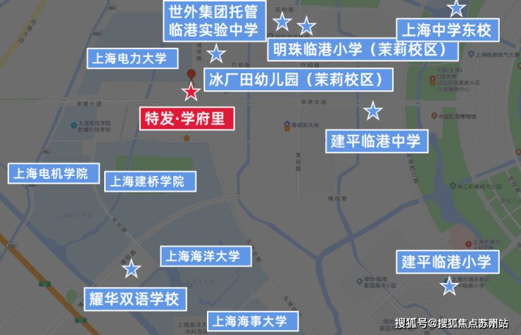 该地块更为上海电力大学、上海建桥学院和上海电机学院三所高校包围,是真正的“学府环伺”。还汇聚了临港实验中学、建平中学、耀际双语学校,明珠临港小学、建平临港小学,冰厂田幼儿园等众多沪上驰名的优质基础教育学校。